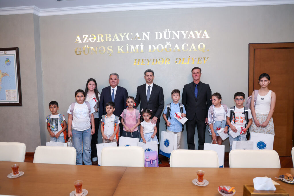 On the occasion of the new academic year, a special meeting was held at the Naftalan City Executive Authority with the children of Martyrs and veterans. The event was attended by Mr. Vuqar Novruzov, Head of the Naftalan City Executive Authority, Mr. Francesco Banchini, CEO and Director of the European Azerbaijan School, and Mr. Recep Öztop, Consul General of Türkiye in Ganja.
